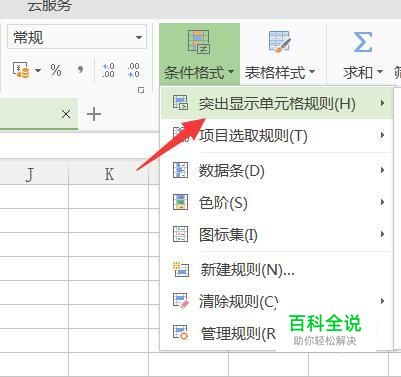 接着我们在最上边的菜单栏中找到开始,在开始的下边找到条件格式我们点击它然后在出现的菜单列表选中第一个突出显示单元格规则,如下图所示: