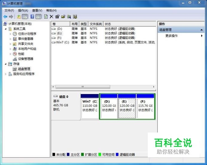 磁盘管理 会弹出【计算机管理】,在窗口左侧点击【磁盘管理】,如下图所示: