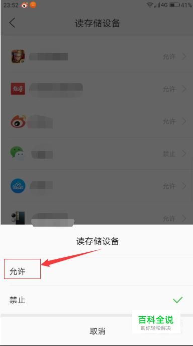 在权限管理页面,我们向下滑动,找到“读存储设备”并点击进入。