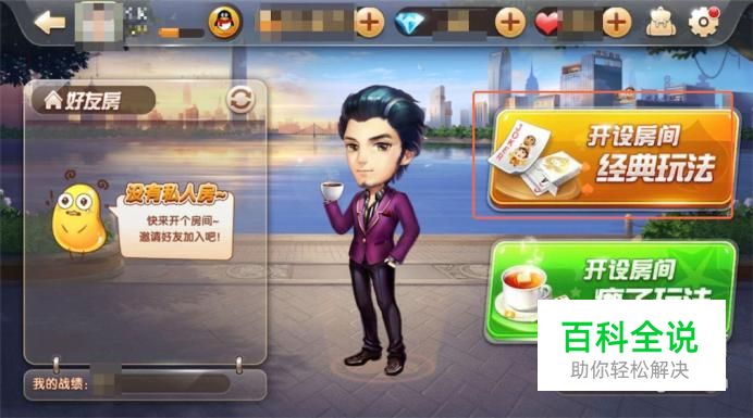 来到好友同玩界面,我们就可以开设房间了。 此处以开设经典玩法房间为例,选择右边的“开设房间 经典玩法”按钮。