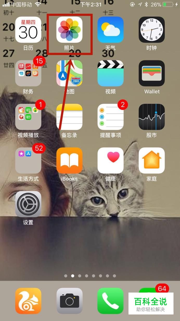 首先在手机桌面上找到“照片”并点击它,如下图所示。
