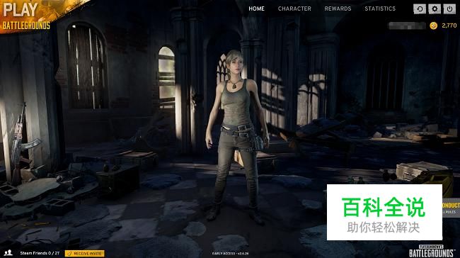 打开你的steam账户,进入绝地求生游戏后,进入游戏主页面。在右上角你可以看到“主页,角色,奖励,战绩”四个选项。