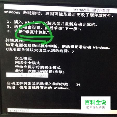 先按住电源键6s左右关机,然后再开机,屏幕出现后按F8键,在出现的选项中选择“修复计算机”并按回车键,即可解除显卡禁用。