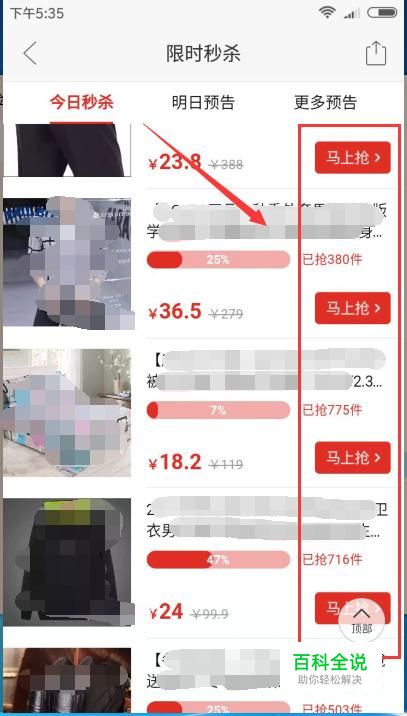 点击后默认进入”今日秒杀“选项卡中,在此窗口中右侧会有一个”马上抢“红色按钮,点击它就可以直接进入购物流程中。