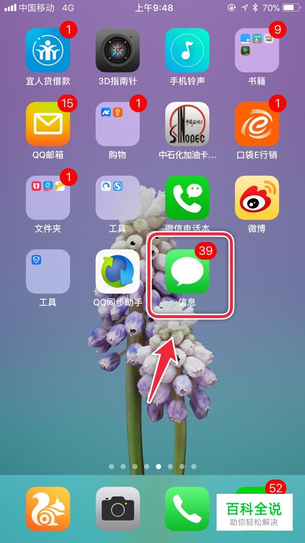 首先在手机桌面上找到信息并点击它,如下图所示。
