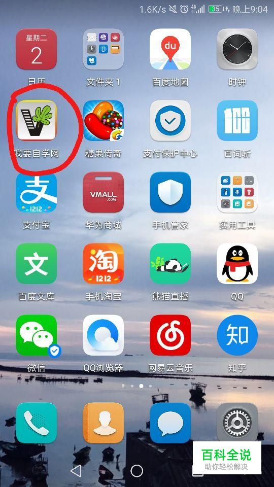 首先点击手机屏幕中的“我要自学网”APP,如图所示。