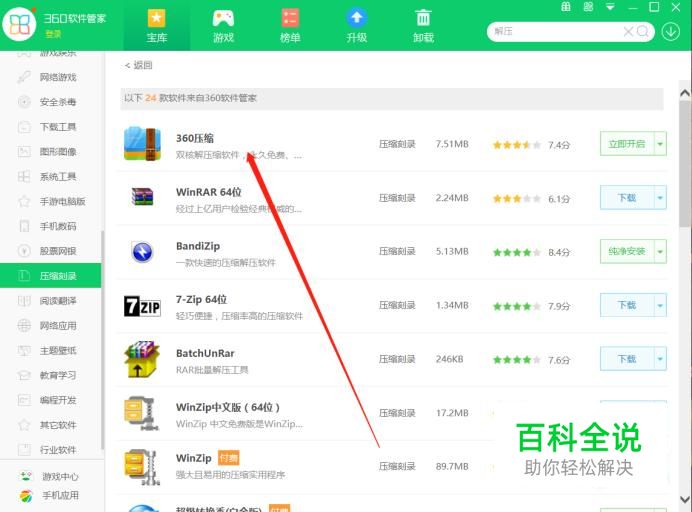 如果您的电脑里有360的话,应该会有360软件管家,在里面下载360压缩。