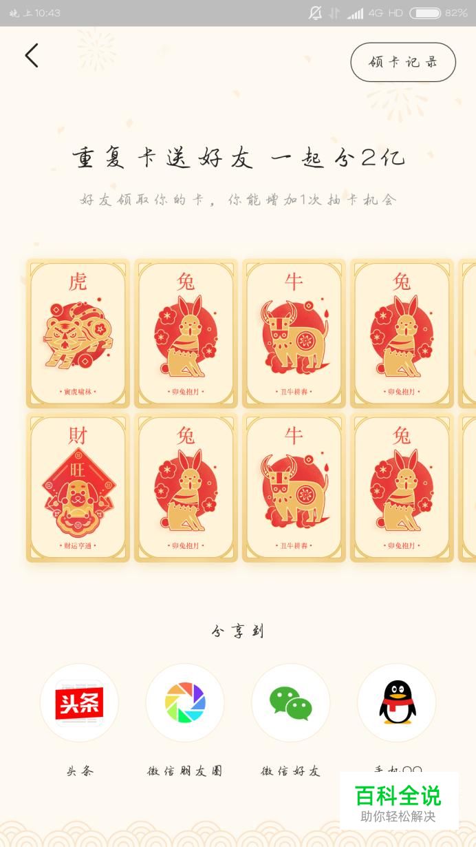 并且如果你的朋友领取了你分享的生肖卡,你也可以增加1次抽卡次数