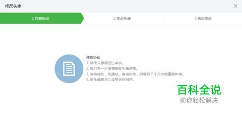 弹出修改头像的协议对对话框,点【同意并进入下一步】。
