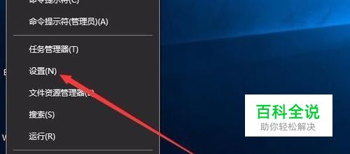 在Windows10桌面,右键点击开始按钮,然后在弹出菜单中选择“设置”菜单项