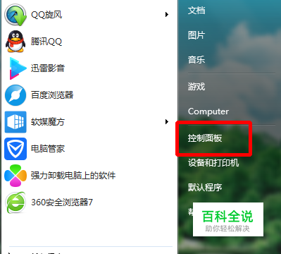 点击左下角的菜单按钮,在上面选择控制面板