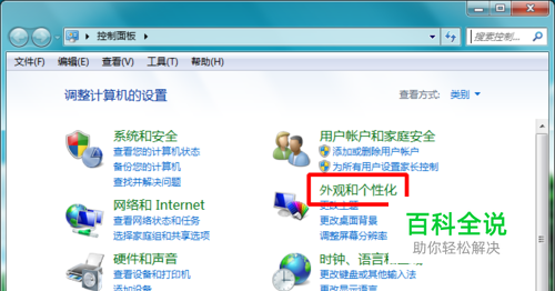 在打开的页面中,选择外观和个性化选项