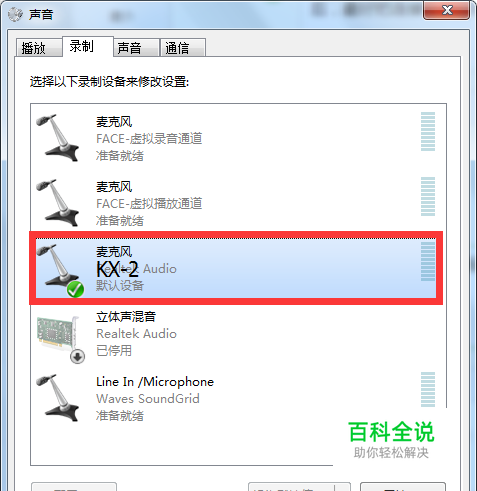 检查电脑的输入输出通道是否设置正确。右击电脑右下角的小喇叭,选择录音设备和播放设备,看看输入输出通道是不是都设置为KX-2