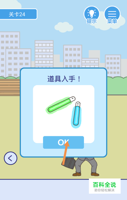 垃圾桶倒下后,点击荧光棒,然后点击OK。