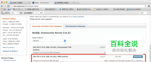 单击下载文档,单击mysql-5.6.22-osx10.8-x86_64.pkg安装包。