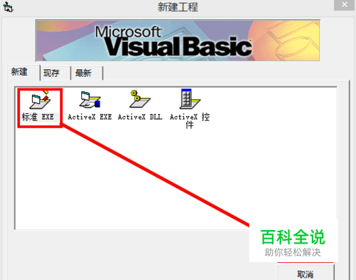 跳出来一个“新建工程”窗口,选择“标准EXE”,点击打开。