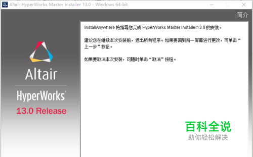 运行hw13.0_win64.exe,即Altair HyperWorks Desktop 13安装包,其他地方下载的安装包名称可能有所不同,进入安装界面