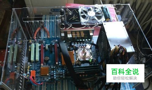 11、然后快进。。这张是因为某通快递接货到发货浪费了两天时间,别的配件都到了水冷还没到,哥们是急性子等不及了,于是顶着炎炎夏日的太阳骑着电动车跑小区门口的电脑城买了个散热器回来装上了。。接上各种线。。