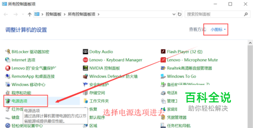 进到“控制面板”后,点击”电源选项“进去