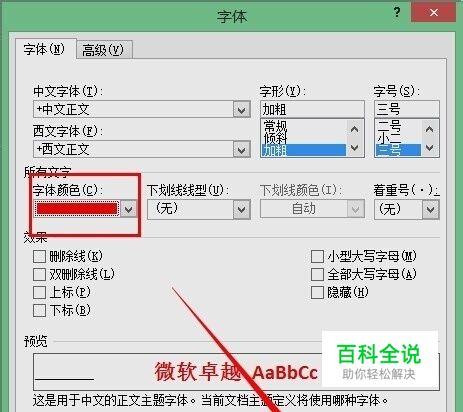 假如说要修改标题三的字体颜色为红色,当同等级的标题只有一个时,直接选择再点工具栏上的字体“颜色”即可,但是如果很多同等级的时候,就不能用这个方法罗。