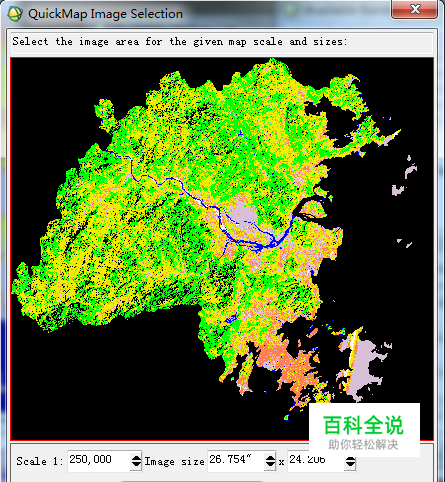 以RGB波段打开制图图像,从主图像菜单口中选择file→open image→new quickmap,出现以下对话框并设置好参数,可调整设置好成图的尺寸: