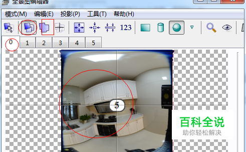 3、在全景图编辑器里,选择“编辑个别图像”按钮图标,然后就可以分别对0-5号图像进行编辑了。