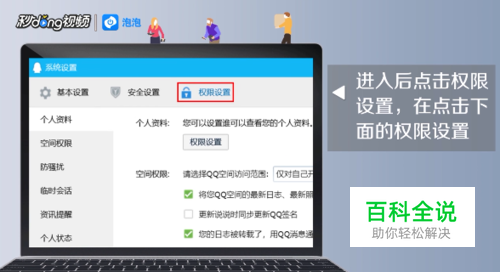 进入后点击权限设置,再点击下面的权限设置。