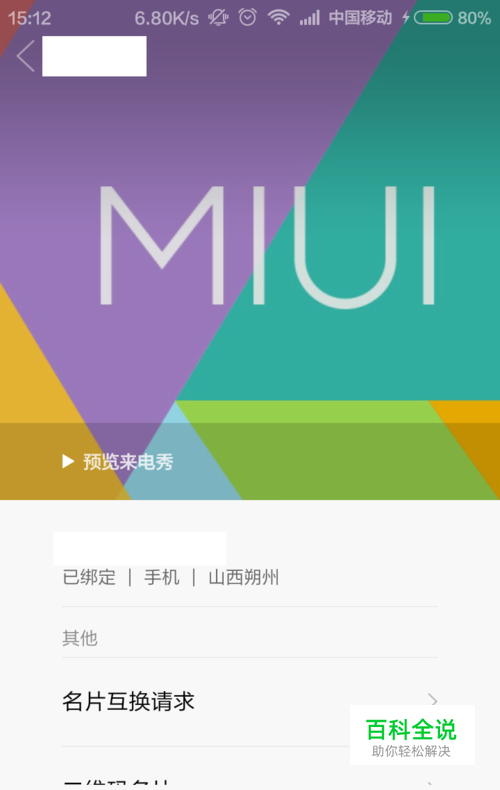 到这个步骤时,我们的来电秀已经设置完毕了,好友在接听你的电话时,页面背景会自动显示来电秀功能(需要MIUI7系统的支持)。但是名片空荡荡的也不好看,还可以设置头像,点击“添加头像”按钮。