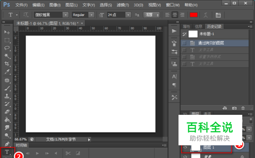 打开ps,选中一个图层,接着点击文字工具。
