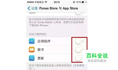 2、关闭自动更新自动下载 如果iPhone在使用时出现卡顿,那可能是因为它正在后台尝试应用升级,而这完全可以通过手动的方式执行。想要更改自动升级应用的设置,你需要进入【设置】-【iTunes Store和App Store】自动下载的项目,然后全部关闭。