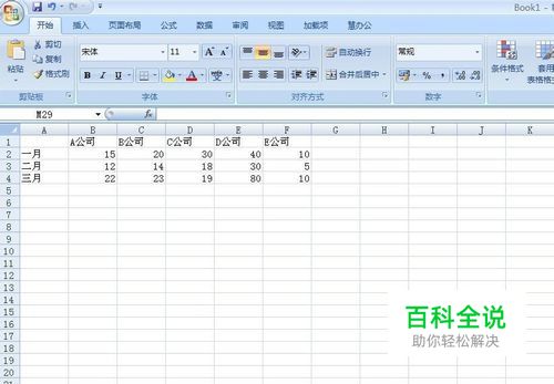 打开Excel表格软件,在表格中制作一组数据,如图所示。