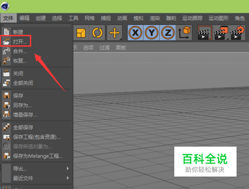 在该界面内找到文件菜单,点击文件菜单在其子级菜单里找到打开选项,如图所示: