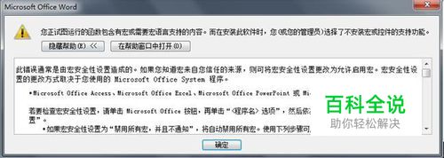 在安装OFFICE2007时,如选择不安装共享功能,打开WORD时就会出现“你正在试图运行的函数包含有宏或需要宏语言支持的内容,而在安装此软件时,您(或您的管理员)选择了不安装宏或控件的支持功能”。
