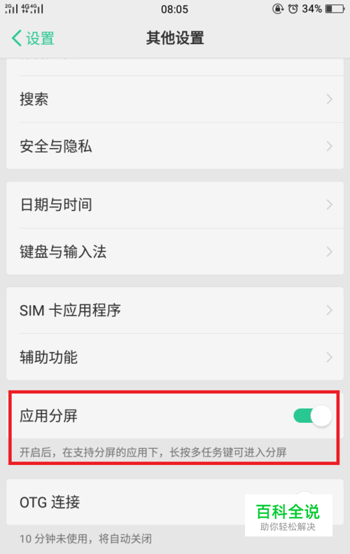 进入其他设置页面找到-应用分屏。并开启应用分屏。