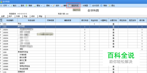 打开会计科目之后,此处有一个指定科目,需要在此处进行现金流量科目的指定。打开指定科目,把银行类科目和现金类科目从待选区域选择到已选区域。