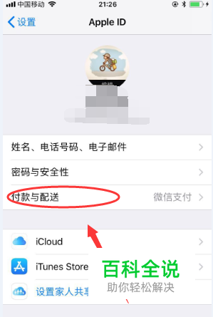 苹果账户原来有默认的支付方式,怎么改成支付宝支付呢;在设置菜单中登录Apple ID;进入Apple ID界面,选中“付款与配送”选项;