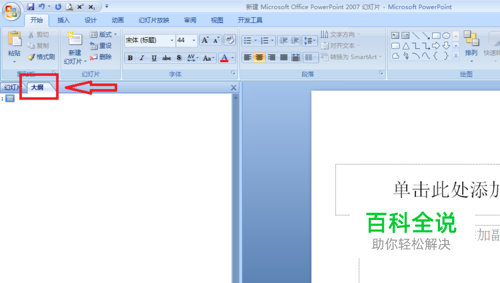 回到PPT中,在大纲第一页视图的光标处粘贴所选内容。