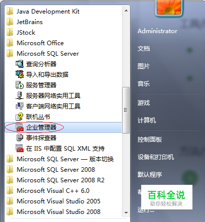 使用企业管理器修改现有sqlserver2000指定用户密码。在程序组中打开sqlserver,找到企业管理器并运行。如图所示。