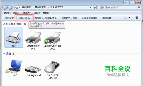 1.1 点击“开始”,找到“设备和打印机”,单击“设备和打印机”。
