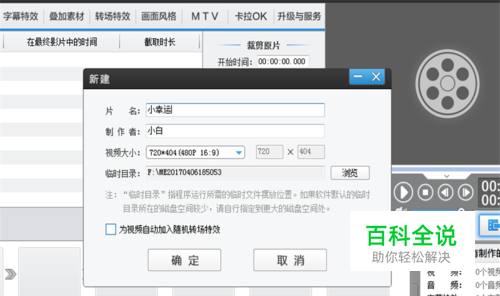 打开之后会默认让你填一个作者和内容,这用于软件自带的开场,当然,我们到时候可以剪辑掉。