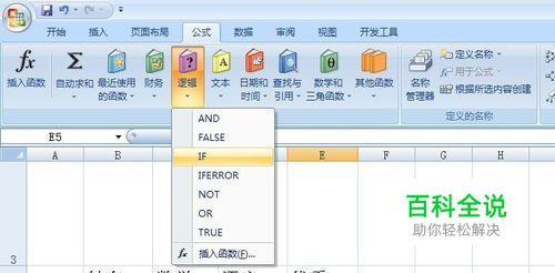 打开一个Excel的文件,鼠标左键单击菜单【公式】>>【逻辑】,这就会弹出【逻辑函数】的下拉列表,逻辑函数有AND(与)、OR(或)、NOT(非)、IF(条件判断)、IFERROR(判断对错)等,如下图所示。