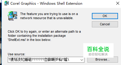 安装cdr时弹出corel graphics windows shell extension,安装目录还有乱码,如图所示