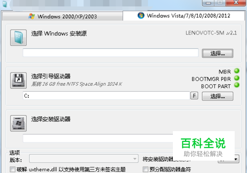 其次,要确定wim封装文件是win2000系统、winxp系统、win2003系统、win vista系统、win7系统、win8系统、win10系统中的哪一个系统,在程序上有两个分类,当前wim封装文件属于哪个系统就选择哪个大项即可。
