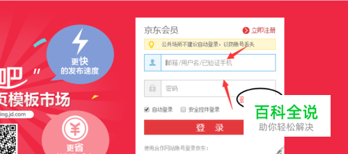 在京东登陆页面登陆京东账号