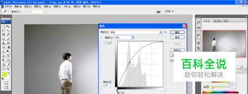 打开PS,按crl+o打开图片,复制背景副本,按crl+M打开曲线对话框,调整曲线,修改图片亮度,让图片变得更亮。