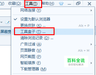 点击“工具”菜单项,从弹出的菜单中选择“工具盒子”项。