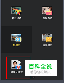 在这里,我用了一款相机软件“相机360”,打开此款软件,点击右下角的五彩球(应该是模板功能吧),出现模板的选择,从中选择“最美证件照”,点击打开。