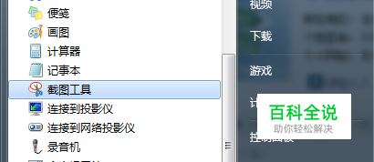 向下滚动,找到附件文件夹,点击打开,找到截图工具