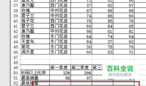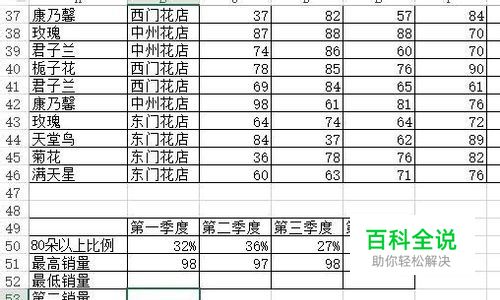 打开一张Excel工作表,表中需要有很多数据,如若没有,即可新建一张表格,打上数据。我在这里用花的销量来为大家做演示。