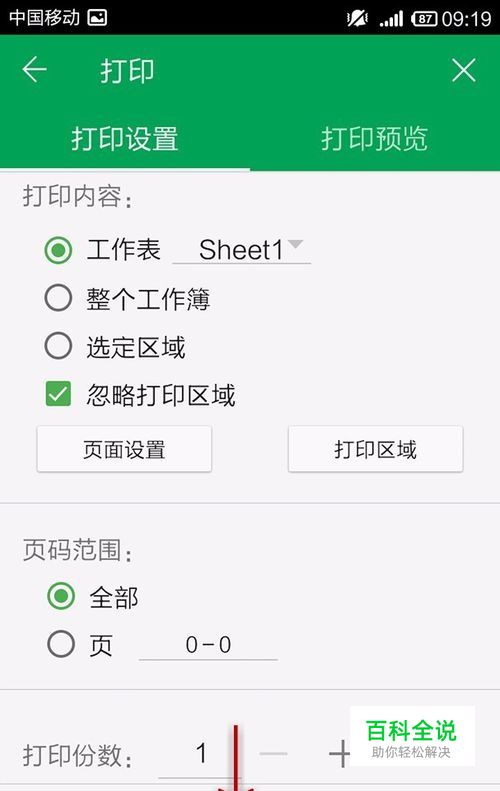 在打印设置中,设置打印内容,打印范围、打印份数。之后可以打印预览